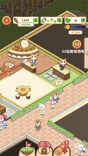 1.以可爱的猫咪为主角,你将在美食街上开设自己的小餐厅,其他的可爱动物将成为你的顾客。