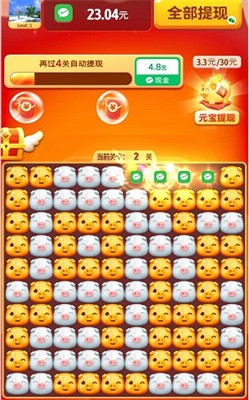 1.滑动猪猪方块,完成消除挑战,每次完成一个关卡就能获得红包奖励,让你享受更加愉快的游戏过程。
