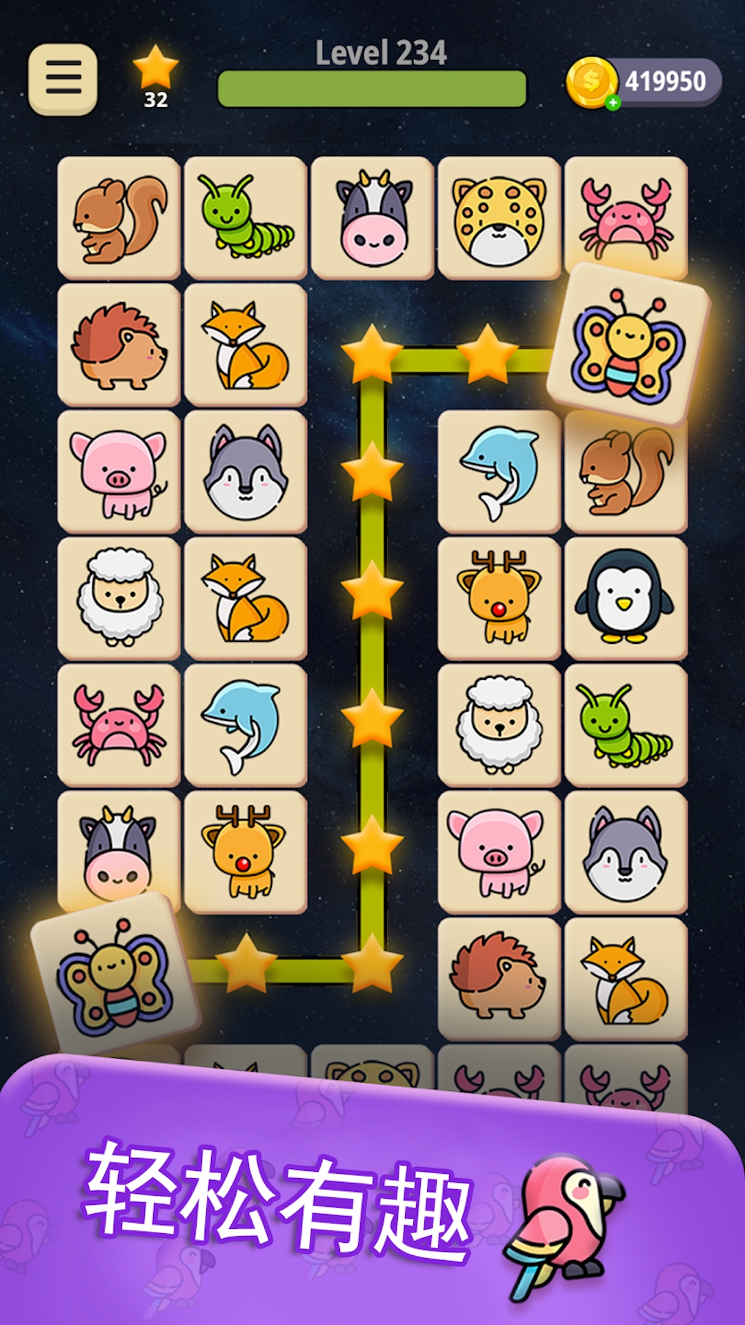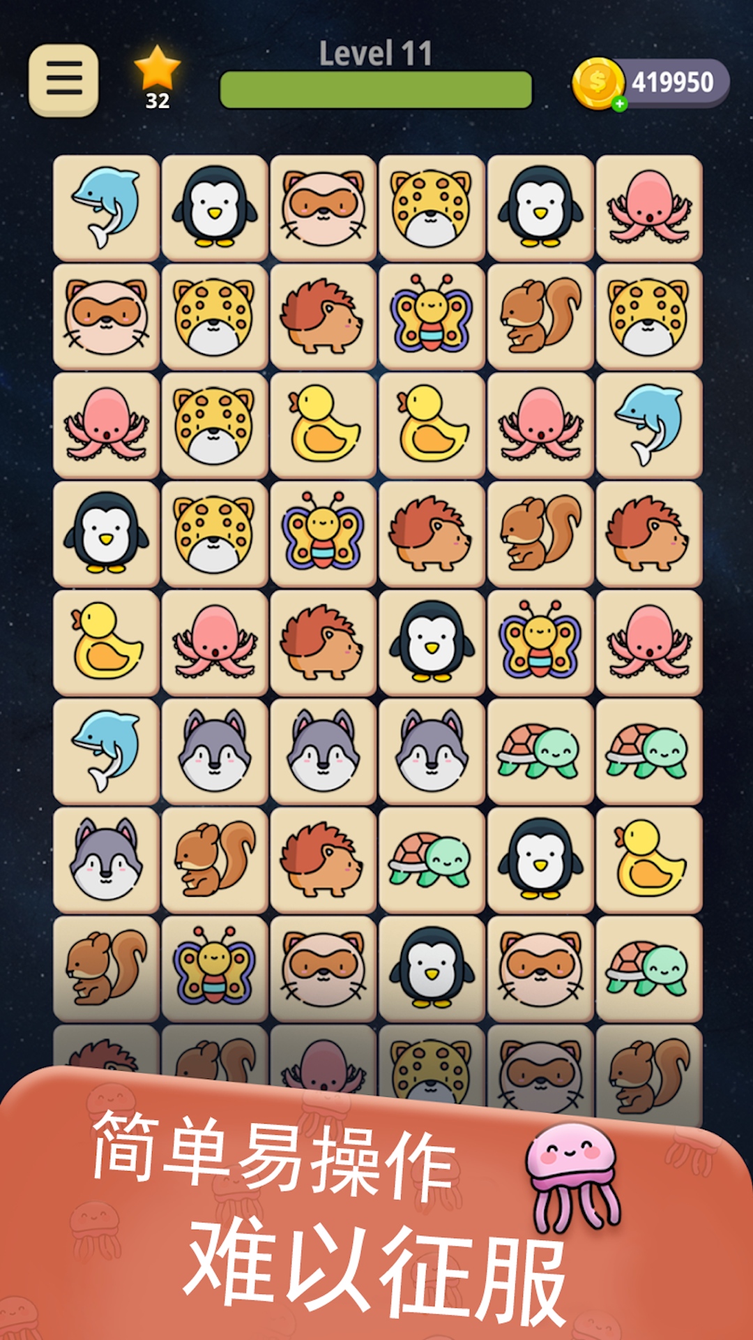 3.继承了经典的连连看玩法,设有多个关卡和难度选项,挑战不同难度的连连看关卡!