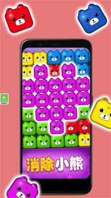 1.玩家需要通过点击两个或以上相邻的同色熊熊方块来消除它们,一次消除的同色熊熊方块越多得分越高。