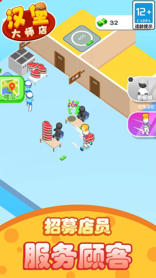 2.管理你的汉堡店,合理安排员工工作,提高服务效率,增加客户满意度,赚取更多金币。