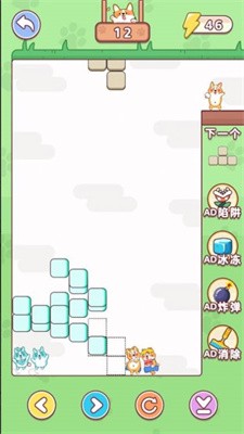 1.在基础的俄罗斯方块玩法中加入了狗狗彩蛋,它们会干扰你的消除操作,需要你更加合理的规划消除顺序。