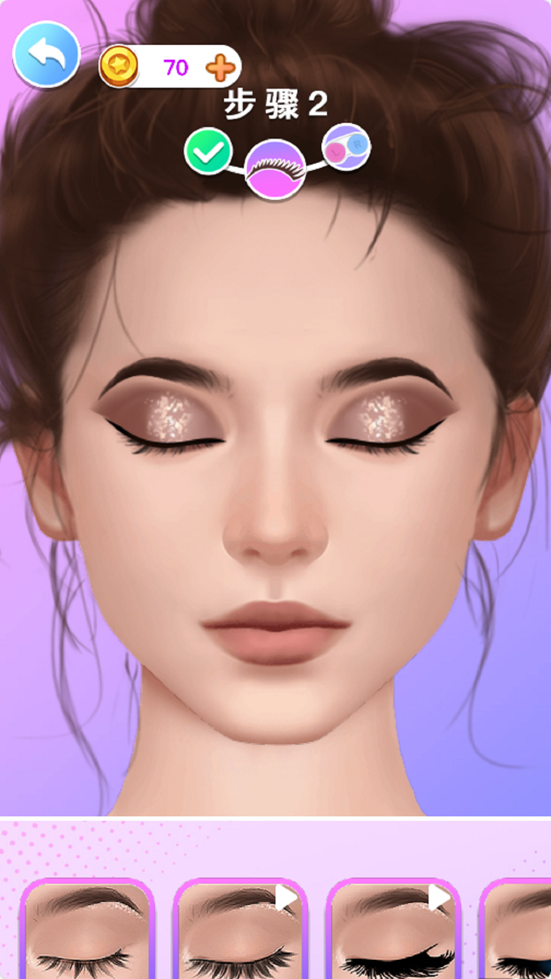 2.在这里你将会不断模拟着化妆,你可以利用游戏的方式不断的去学习化妆技巧