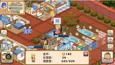 2、给设施升级。升级之后使用费会增多,而且到了5级之后,有的设施还可以合并!比如说浴室、客房。