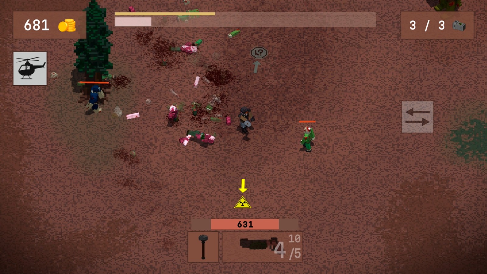 僵尸生物区战场是一款像素动作生存冒险游戏,僵尸生物区战场将玩家带入一个被僵尸病毒侵染的末世世界,在这个充满危险与未知的环境中,玩家需要勇敢地面对各种挑战,努力生存下去,收集区域内的金币,购买更多的武器来武装强化自己