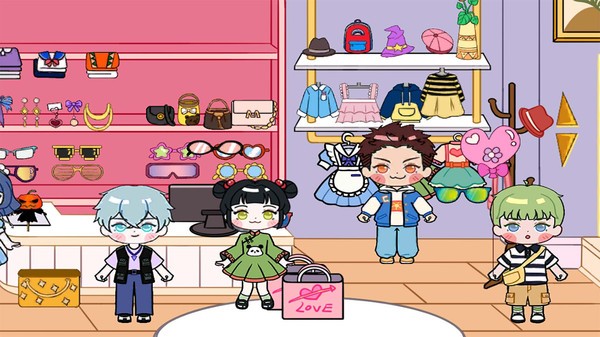 2.在这里你可以装扮你的角色,给他们换上可爱的服装和饰品,更可以创作你的故事
