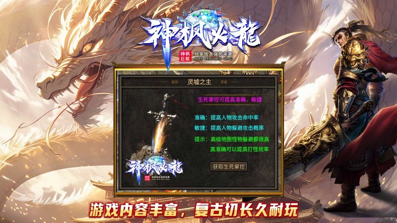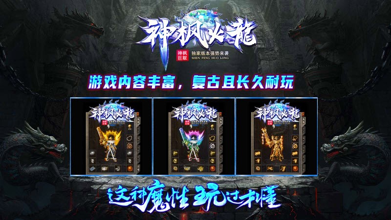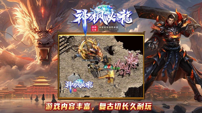 《神枫火龙》是一款特色复古火龙版本的大型多人竞技传奇游戏。在这个充满挑战和机遇的虚拟世界中,玩家将扮演一名勇士,踏上寻找神秘火龙、征服古老副本的冒险之旅。