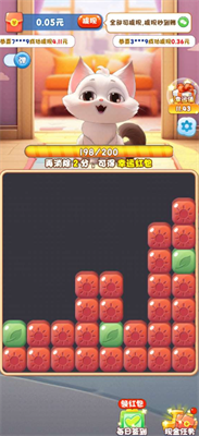 1.选择相同颜色的方块通过点击消除它们,每次成功消除一组方块,你都将获得一定数量的红包奖励。