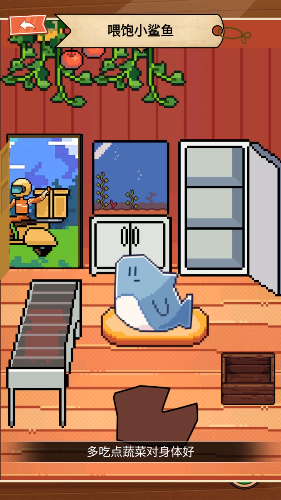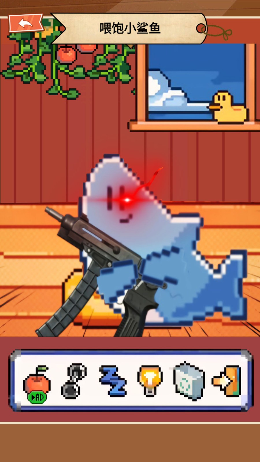 1.使用各种食物来喂养小鲨鱼,帮助它茁长成长,将你看到的全部可以食用的东西都喂给它吧