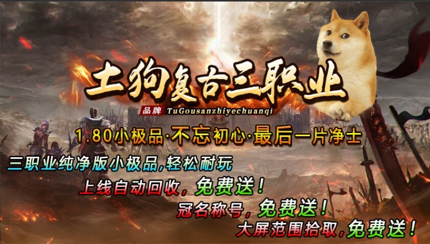 土狗三职业是一款180小极品三职业传奇手游,在土狗三职业中,玩家上线联系客服领取免费年卡,送自动回收、自动拾取、冠名称号、大范围拾取,三职业纯净版小极品,轻松耐玩一切靠爆,散人能玩