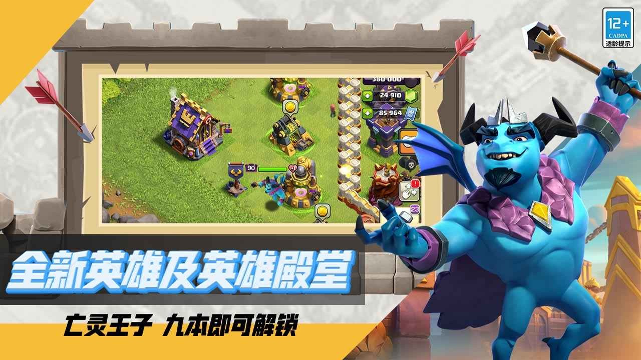 ●【全新英雄】全新英雄降临,翱翔于家乡村庄之上!亡灵王子,一位会飞的新英雄,擅长从空中发动攻击、造成伤害,还能削弱敌方防御。大本营达到9级或更高等级,即可解锁。