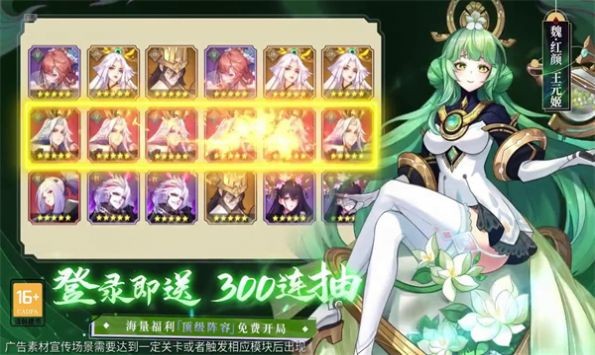 1.玩家登录就送300连抽,海量福利登录即领,免费顶级阵容开局