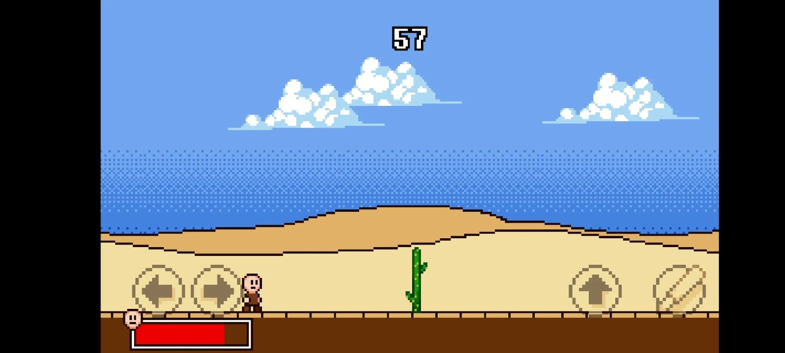 5.右边向上的箭头控制跳跃,棒子图标点击后可以挥动棍棒打飞苹果