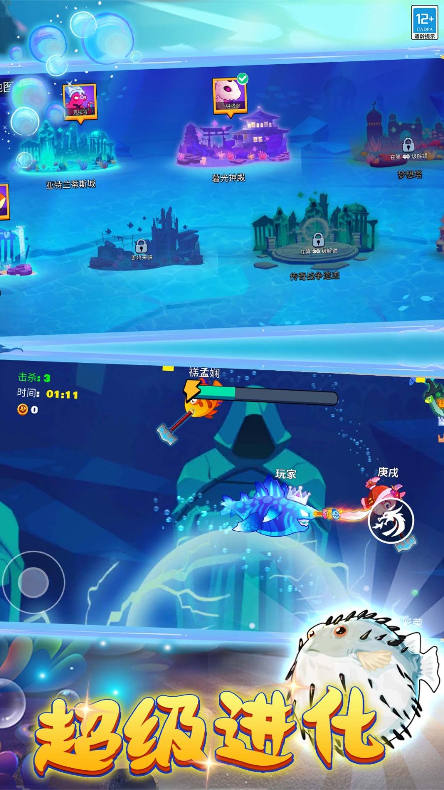 1.除了基本的觅食玩法外,饥饿的鱼还融入了多种元素和模式,让游戏更具趣味性和挑战性