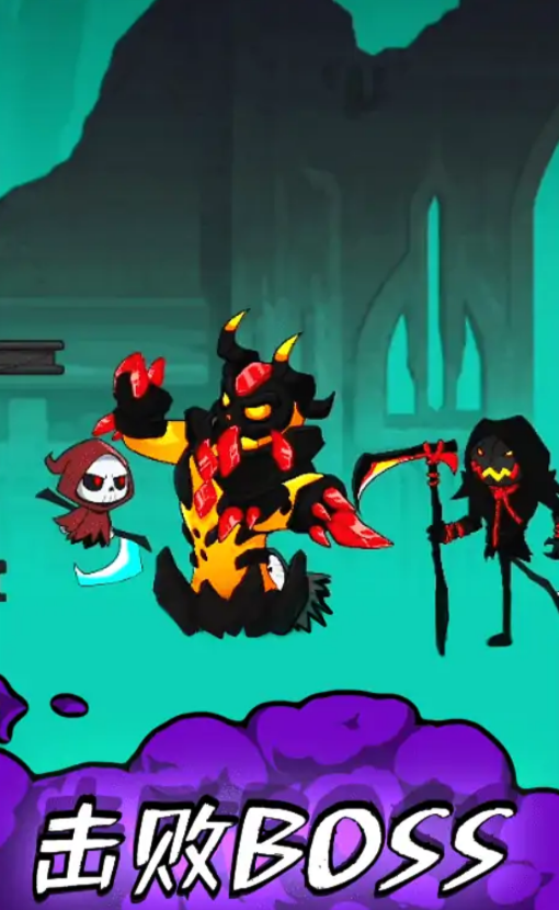 1.操作简单,玩家只需用手指点击屏幕,即可控制小死神的移动和攻击。