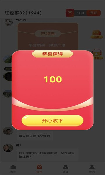 2.参与红包群抢红包玩法,红包群每天都会发放大量红包可供玩家获取