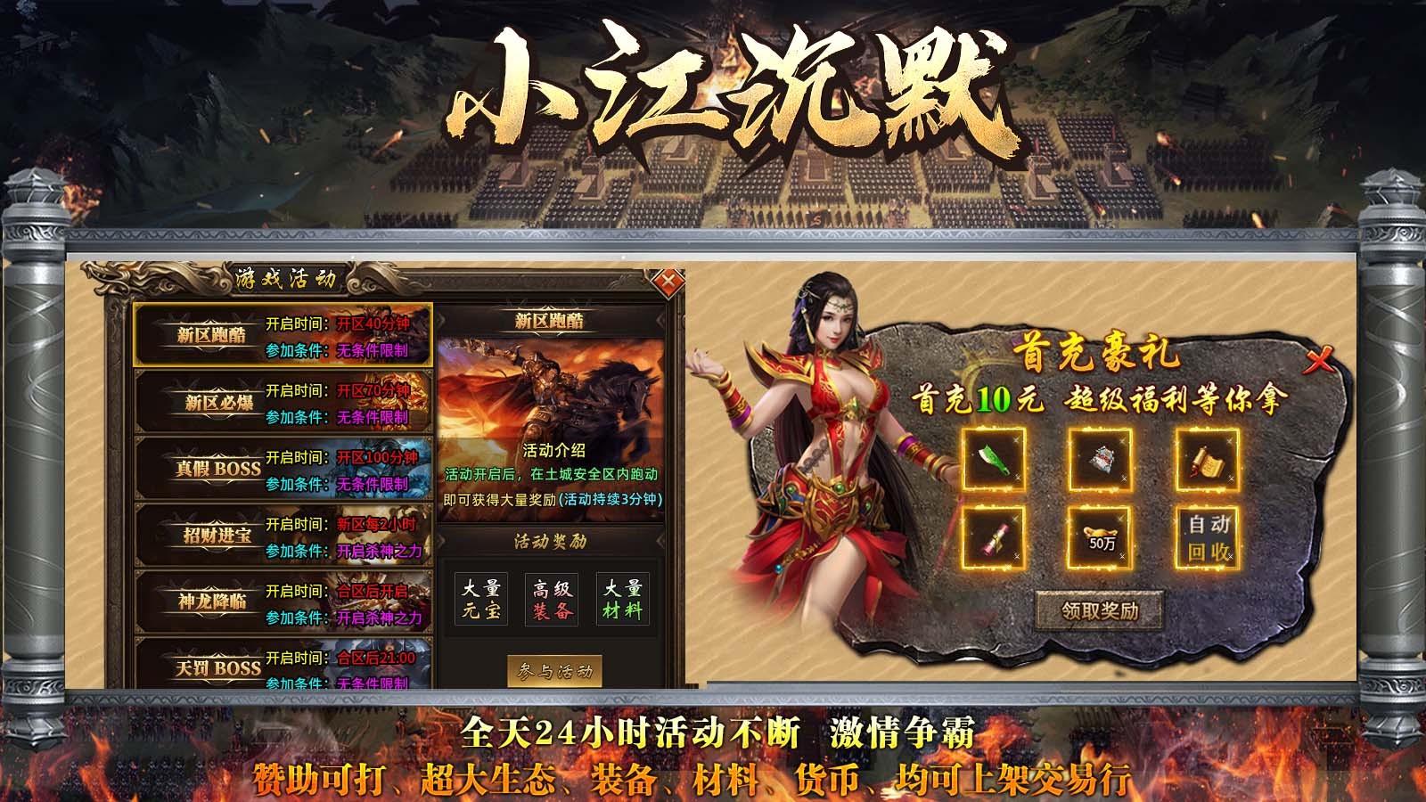 小江沉默是一款1.85沉默散人传奇手游,在小江沉默中,所有材料、货币、装备全靠打,主流货币为元宝,官方概不售卖,一切都靠打,超大交易生态,装备、材料、货币、均可上架交易行,散人搬砖首选