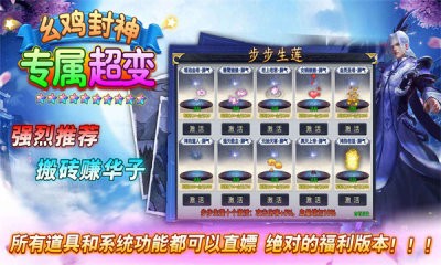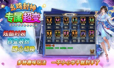 幺鸡封神专属超变是一款爆率超高的激情产期游戏。在幺鸡封神专属超变中,任何玩家都能找到自己的乐趣,在玛法世界激情战斗,在未知领域创造自己的神话,不爽就来战,和真人玩家狭路相逢,或者并肩作战,冲!