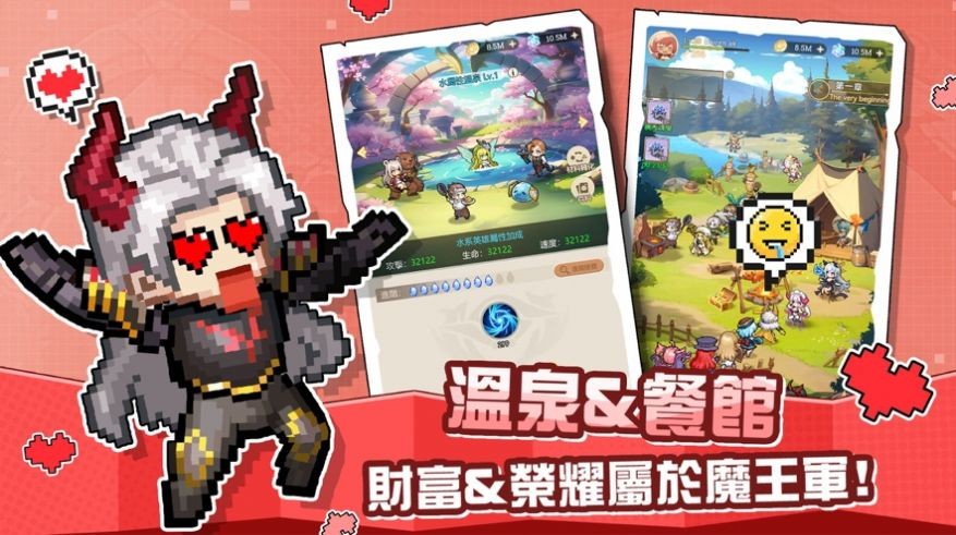 2.收集可爱的女神英雄,组建你的魔王大军,每个角色都有独特的个性