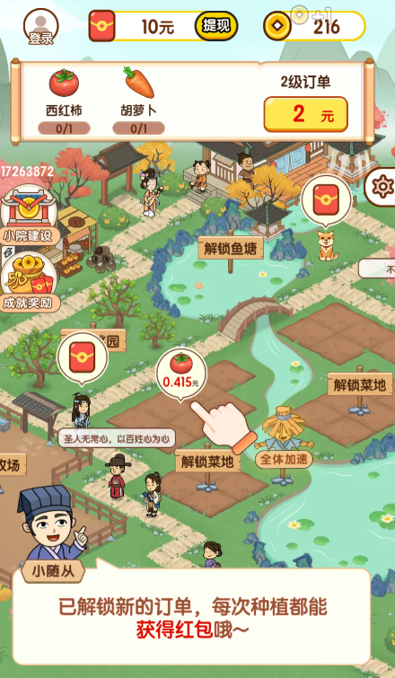 3.你可以实现农场主的梦想,通过努力经营赚取红包奖励