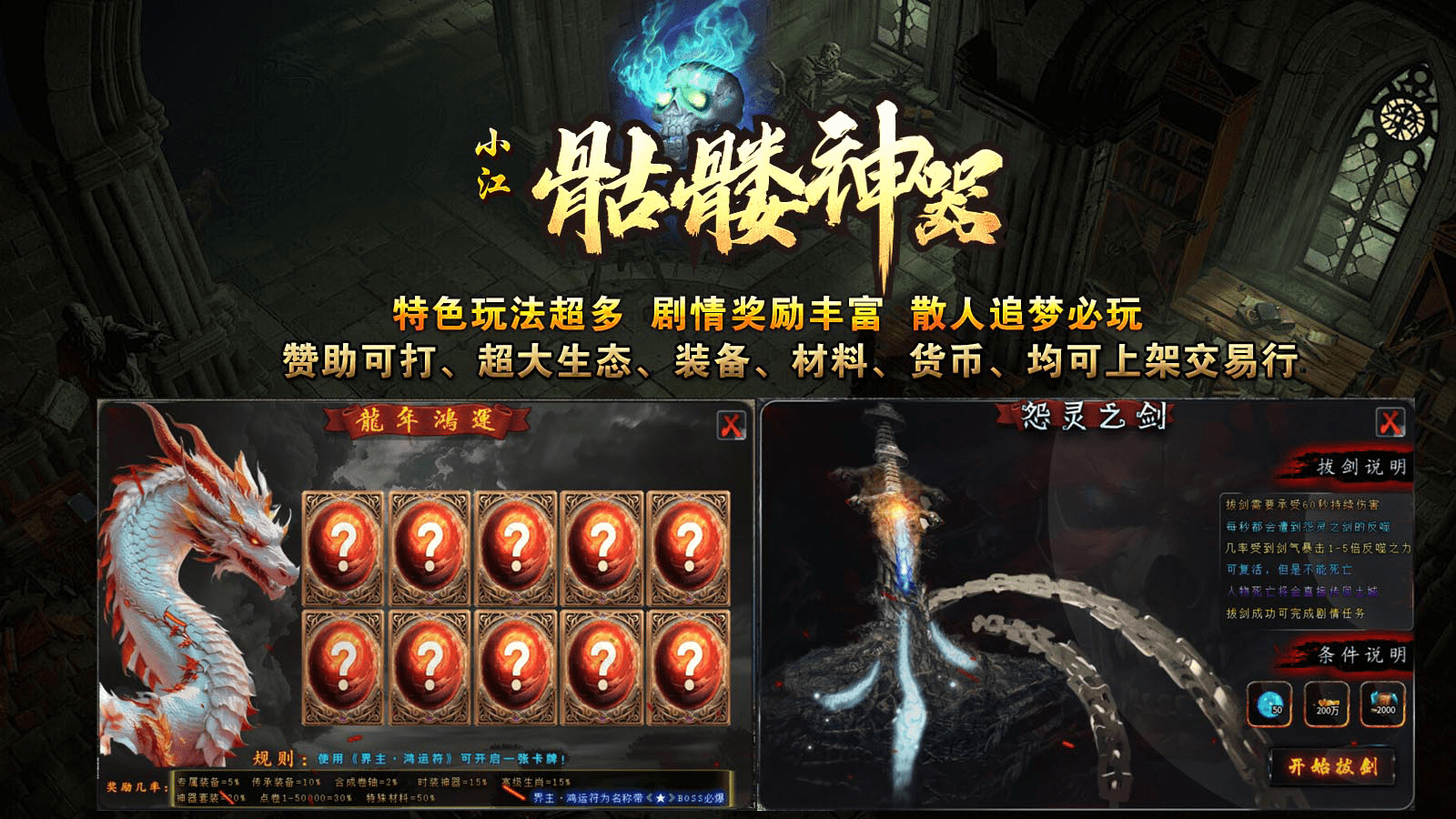 小江骷髅神器微变是一款单职业神器版本沉默传奇手游,在小江骷髅神器微变中,玩美融合单职业、专属、沉默、神器等多种特色玩法元素,各种特色玩法超多,超大交易生态,所有装备全部靠打,散人首选搬砖