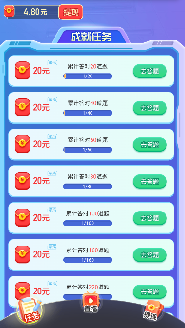 3.采用答题闯关的模式,玩家需要连续回答正确的问题,才能顺利通关。