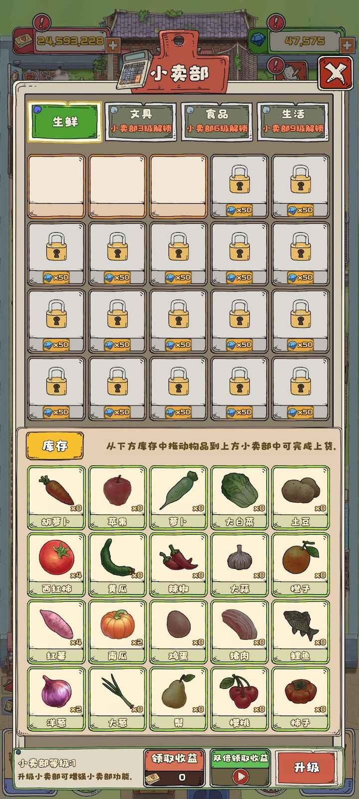 2.提升小院的等级,饲养牛、羊、鸡等家畜,产出各种农产品,这些产品可以直接出售,获得金币奖励。