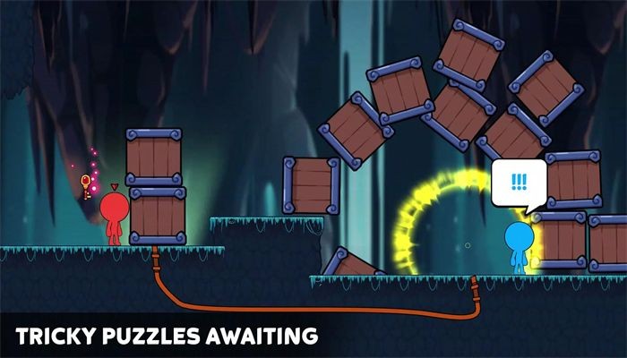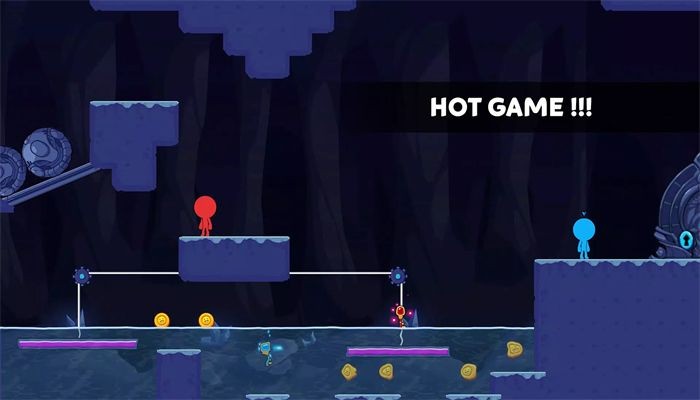 1.游戏采用双人合作模式,玩家需要同时操控红蓝两位火柴人,通过协作来克服困难
