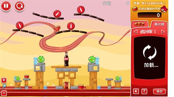 2.每个关卡的地图都充满了可口可乐瓶、罐和标志,它们不仅是障碍物,也可以作为弹射小鸟的道具。