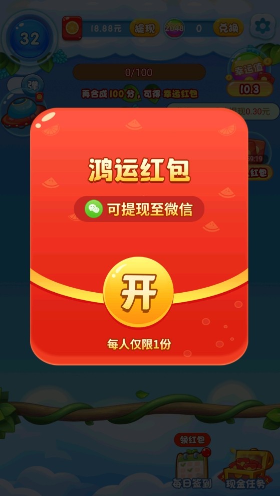 2.游戏中会设置不同的分数阶段,达到这些阶段即可解锁对应的红包奖励,需要完成一定的任务条件,才能领取。