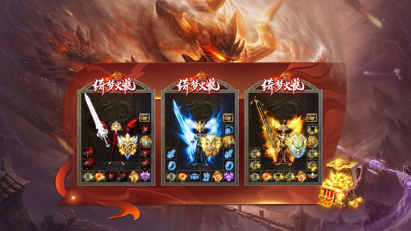 1.装备依次: 祖玛、赤月、雷霆、强化雷霆、战神、火龙、冰龙、邪龙、绮梦