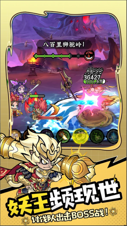 飞天遁地的妖王神出鬼没,霸占至宝。率领你的专属小队挑战强大Boss夺取至宝。横扫九九八十一难,进阶终极大妖