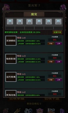 2.放置式养成,让英雄不断成长,轻松点击,享受无限抽卡的乐趣。