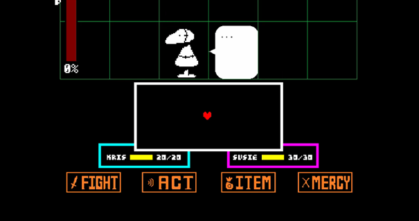 对付他主要是使用“行动——鼓励”,第一次他会落泪,泪滴主要是左右两侧,所以不需要移动心形;第二次鼓励,幽灵会在战斗框内写字,表示自己现在心情不好;第三次鼓励,你是给幽灵讲一个笑话,他的泪水会往上空飘洒,所以心形都不需要移动;最后也无需饶恕幽灵,战斗画面会消除,幽灵告诉你,他一直就想遇到某个像你那么友善的人,他不会再挡道了。