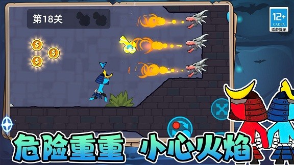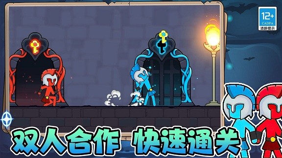 2、采用经典熟悉的火柴人主题,控制红蓝火柴人移动;