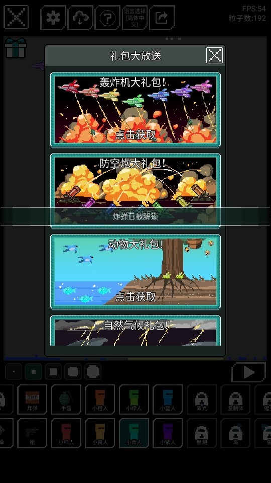 沙盒上帝模拟器内置菜单版是一款像素风格沙盒模拟建造小游戏,在沙盒上帝模拟器内置菜单版内化身成为上帝,一步步的改造找个微小世界,游戏将沙盒冒险玩法与建造元素相结合,为玩家提供了一个开放、自由的游戏世界,从零开始,用自己的双手塑造一个独特的世界,添加各种生物和元素,并让它们在玩家的创造力下变得栩栩如生。