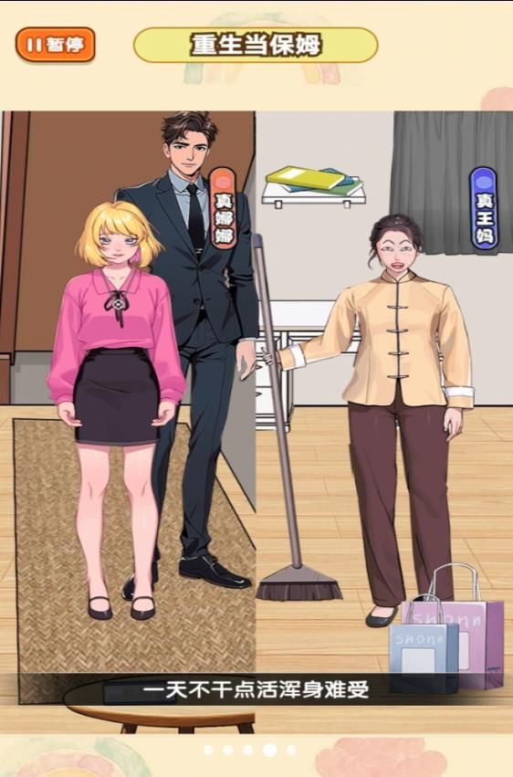 王妈重生记游戏是一款休闲烧脑闯关益智小游戏,在王妈重生记游戏内体验多重趣味解压内容,游戏有很多关卡,每个关卡都有不同的内容,但最终的目标都是一样的,你要帮助王妈翻身做主,彻底摆脱总裁的欺凌,不再是那个可怜的王妈,整体操作非常简单顺利,邪恶总裁的速度很快,就看你能否打败他了!