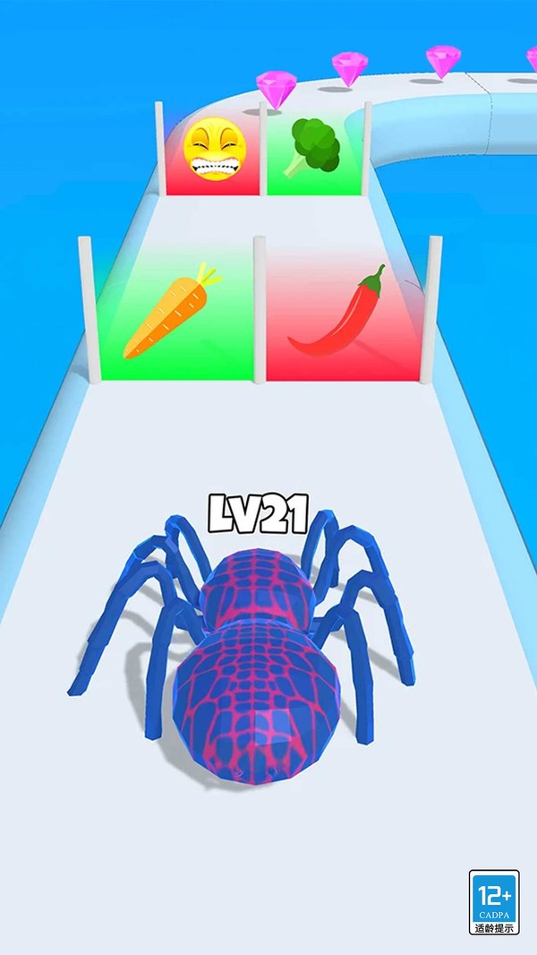 这是一款益智休闲的快节奏跑酷游戏,在这里蜘蛛是关卡的主角,你需要帮助蜘蛛成功完成关卡并避开障碍物,游戏中你需要控制一只长相奇怪的蜘蛛来进行跑酷冲刺,你只需要左右滑动即可帮助蜘蛛左右移动,躲避各种障碍物。 在这里你将面临各种挑战和障碍,包括高级蜘蛛、大摆锤和尖刺攻击,如果你成功通过关卡,你将获得丰厚的奖励。