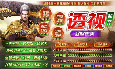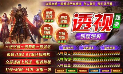 砍怪爆爽透视超变是一款高爆率、超变版本的复古传奇游戏。在砍怪爆爽透视超变塑造的这个充满激情与挑战的虚拟世界中,玩家将体验到前所未有的砍怪快感和装备爆率,以及独特的功能,让你在战斗中洞察先机,享受超凡的游戏体验。