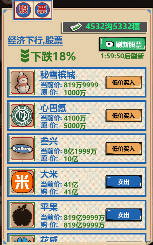 2.游戏还提供了一个动态的经济系统,模拟了真实的金融市场,需要你合理规划投资,获取更多收益。