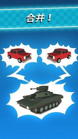 玩家能够通过合成同等级的车辆获取其他的车型进行游戏,包括了坦克、堆土机等车辆能够解锁,在一定的时间内利用氮气进行加速,在众多的赛道上进行狂飙,提高车辆的属性,车辆赚钱快速。