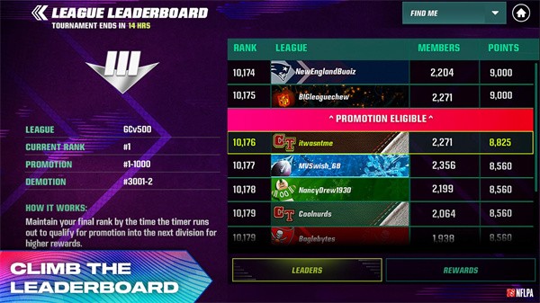 2.加入或创建橄榄球俱乐部,与其他成员一起参加各种赛事和活动,赢得丰厚的奖励,不断提升你的球队实力。