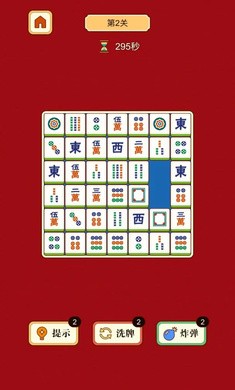 1.通过移动麻将牌,使相同花色或数字的牌配对并消除。
