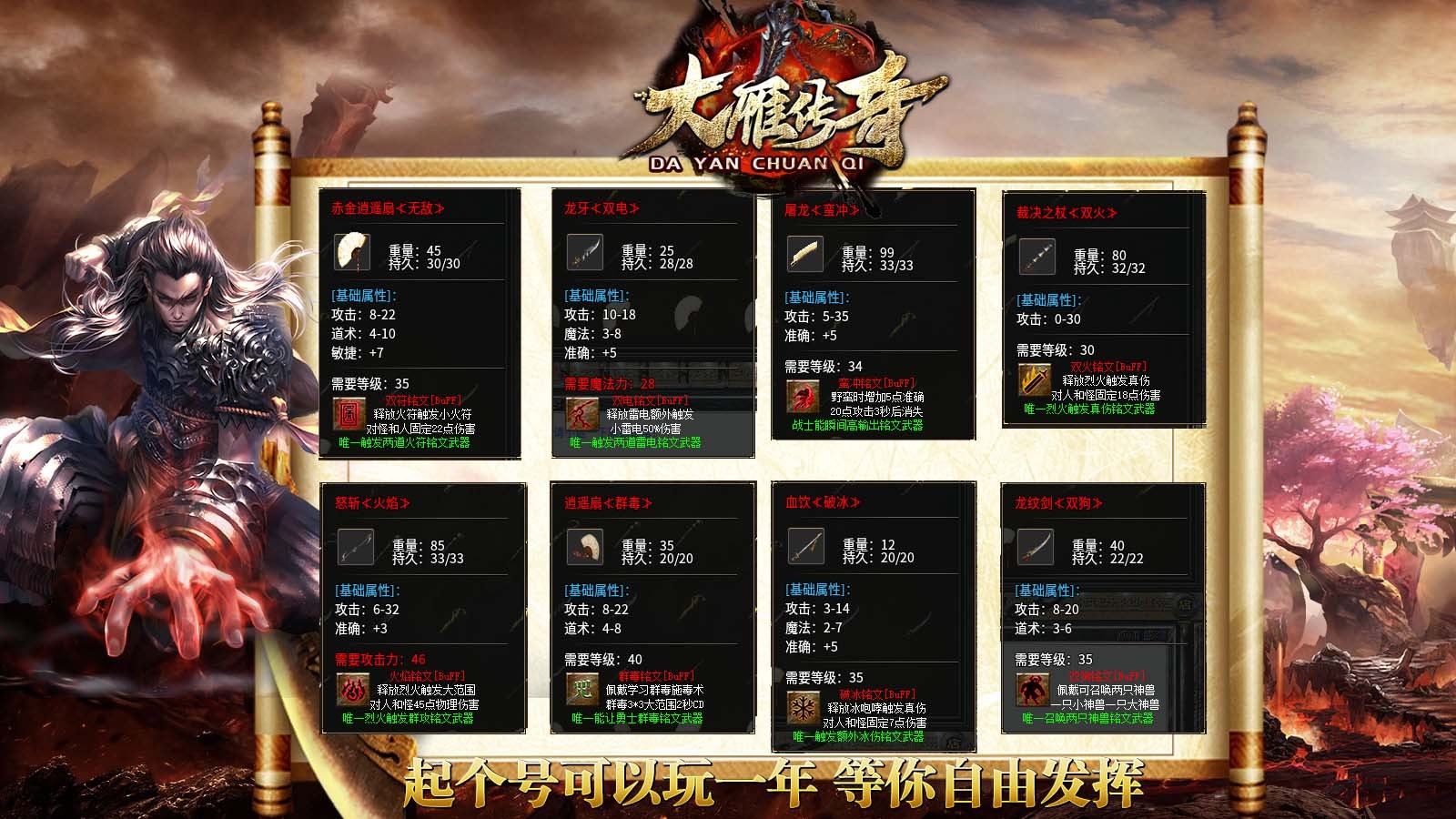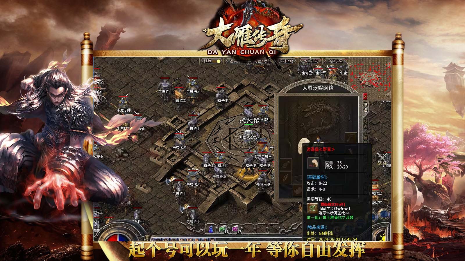 大雁传奇是一款1.70复古单职业传奇手游,采用原始经验数值,根据等级打怪的经验倍数会不—样,让你轻松升级,享受畅爽激战。在大雁传奇中,热血激情,PK竞技,多样玩法随心选择,感受极致刺激。