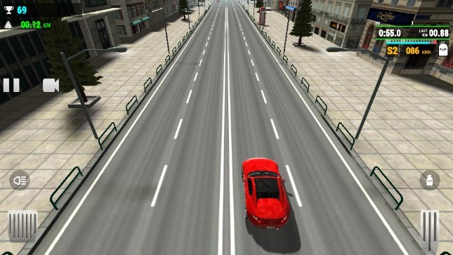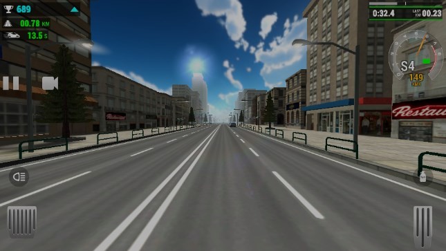 1、在本站下载安装并打开赛车限制游戏,进入游戏。右边按钮是油门,点击可以加速。