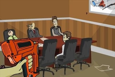 是一款以办公室为背景的益智休闲发泄游戏,玩家需要收集游戏中的各种物品作为屠杀工具,并按照指示找到并消灭办公室里的员工,包括在办公室工作的人、吃饭的人、打扫厕所的人。