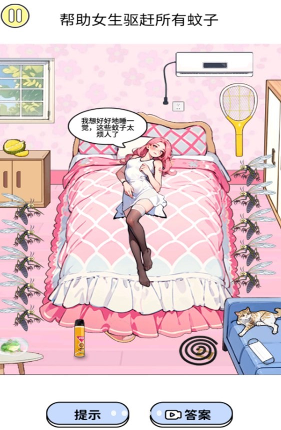 这是一款驱蚊模拟游戏,玩家将扮演聪明的驱蚊侦探,利用各种道具和技巧解开谜题,找到蚊子藏身之处,并巧妙地驱除它们,从蚊帐到香薰,到高科技驱蚊剂,每种工具都有其独特的作用,随着关卡的进展,蚊子会变得更加狡猾,你需要更加明智和小心地保护女主角的睡眠。