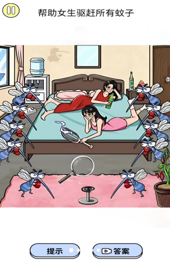 赶走讨厌蚊子游戏是一款十分魔性的手机休闲小游戏,在赶走讨厌蚊子游戏内玩家将帮助女主人驱散各类来袭的蚊子,将驱蚊与解谜巧妙结合。 每个关卡都是一个需要解决的谜题,考验玩家的逻辑思维,提供种类丰富的驱蚊工具,从传统的蚊香到现代科技产品,玩家需要根据情况进行选择,跟随游戏的进展,逐步揭晓女主角与蚊子之间的有趣故事,增添游戏的情感色彩。