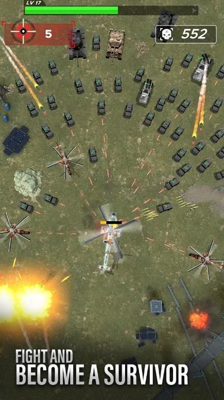 直升机幸存者游戏是一款飞行射击题材手机闯关小游戏,在直升机幸存者游戏内开启的射击竞技,刺激的射击冒险竞技游戏,极其刺激的多人冒险,玩家将扮演直升机飞行员,在末日世界执行各种任务,空中与地面穿梭,使用直升机完成一系列的生存冒险。