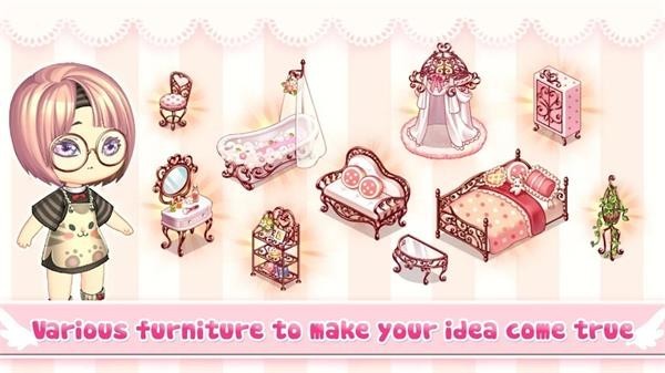 6、玩家可以DIY家具,创造不同风格的物品或装饰品,故事情节会随着关卡的通关而逐渐显现。